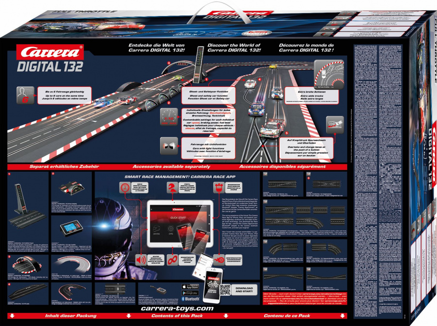 ● široká nabídka aut a příslušenství - aplikace, výsledkové tabule, bezdrátové ovladače, rozšíření na více drah a další (velká část dílů je shodná s díly řady EVOLUTION a Digital 124)